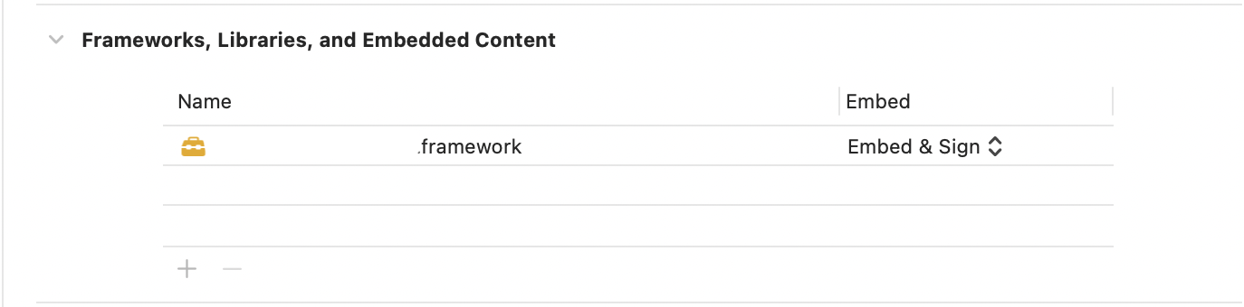 - 추가된 프로젝트의 프로젝트 파일에서 Target -> General -> Frameworks Libraries, ans Embedded Content에 추가