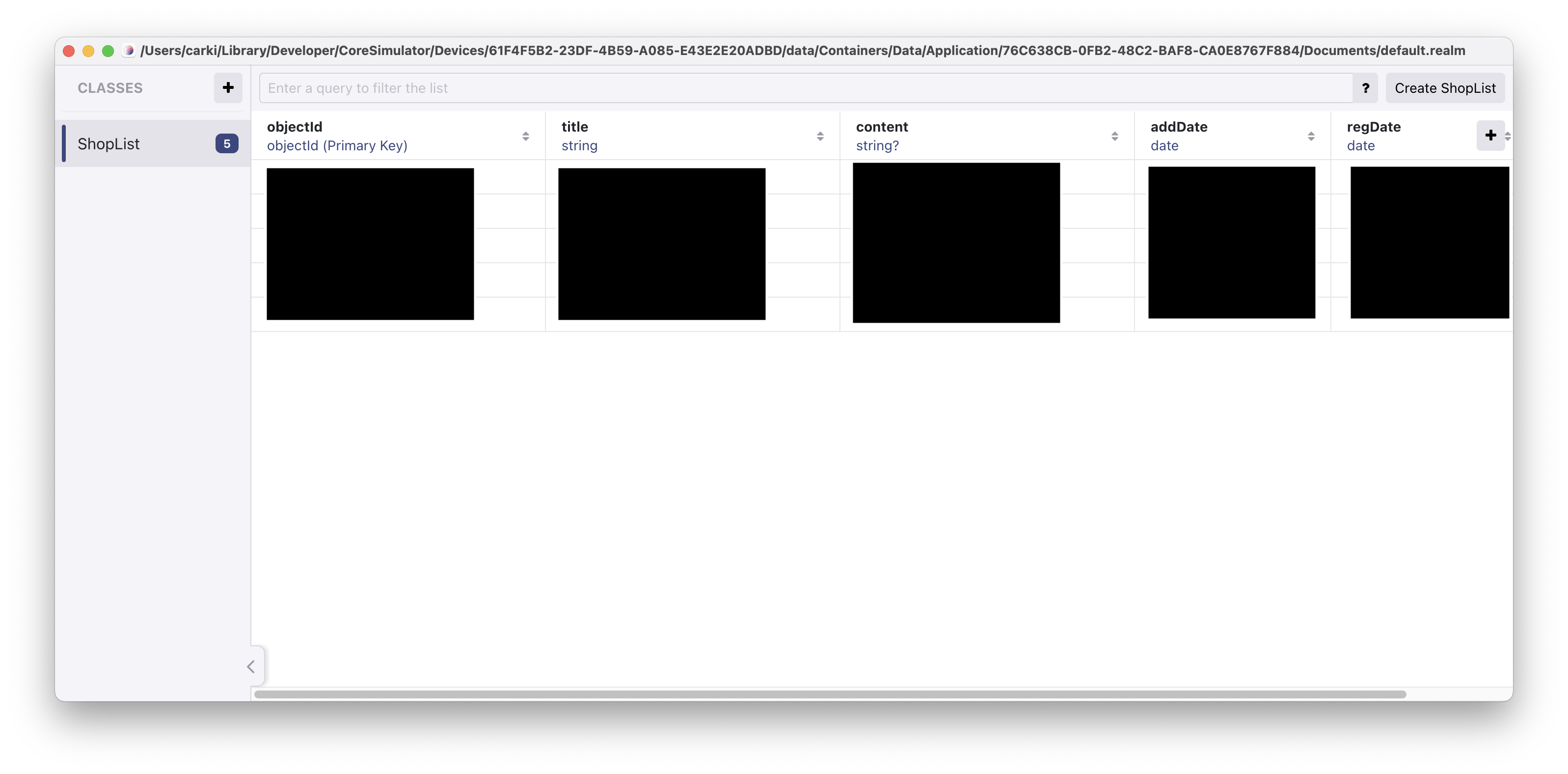 print("Realm is located at:", realm.configuration.fileURL!)